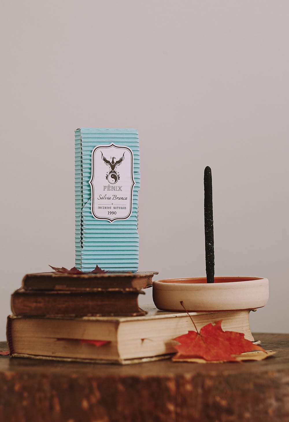 Composição: Sálvia Branca, Resina de Breu Branco, Resina de Olíbano, carvão vegetal e álcool de cereais.