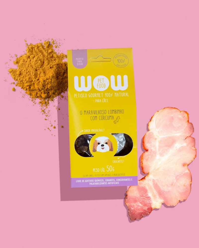Petisco 100% Natural para cães feito de lombinho suíno, cúrcuma e nada mais! 100% natural, livre de conservantes, palatabilizantes, corantes e aditivos químicos!